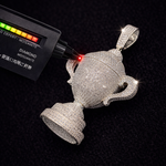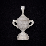 This fully iced custom Trophy pendant is crafted from solid 925 sterling silver and completely flooded with premium VVS moissanite stones for maximum brilliance and fire. The classic championship trophy...