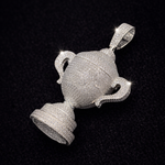 This fully iced custom Trophy pendant is crafted from solid 925 sterling silver and completely flooded with premium VVS moissanite stones for maximum brilliance and fire. The classic championship trophy silhouette features detailed handles, a rounded cup body, and a layered base — all precision pavé-set for a seamless, high-end finish.
