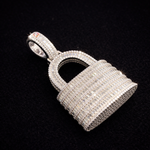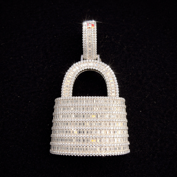 This fully iced custom Padlock pendant is crafted from solid 925 sterling silver and completely flooded with premium VVS moissanite stones for maximum brilliance and fire. Designed in a bold lock silhouette, the piece symbolizes security, loyalty, and power — elevated with a luxury, high-end finish.