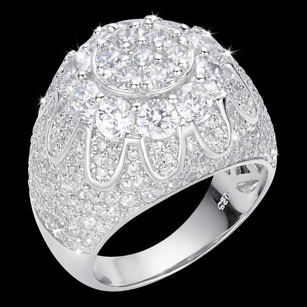 Turn heads with this bold crown dome shaped ring crafted in genuine 925 sterling silver. Fully iced with premium stones for a bright, high-shine finish, this piece delivers luxury and presence.