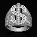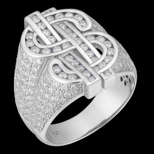 Turn heads with this bold dollar sign ring crafted in genuine 925 sterling silver. Fully iced with premium stones for a bright, high-shine finish, this piece delivers luxury and presence....