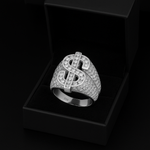 Turn heads with this bold dollar sign ring crafted in genuine 925 sterling silver. Fully iced with premium stones for a bright, high-shine finish, this piece delivers luxury and presence.