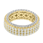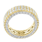 This customized Ring features an elegant look, detailed with an engraved eternity inspired style micro pave casual wear high profile band on .925 sterling silver with 14k Yellow gold finish on it