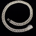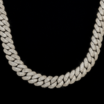 Elevate your style with the 14MM Dome-Style Cuban Link Chain, masterfully crafted in 925 sterling silver and handset with VVS, D-color Moissanites, the highest standard of clarity and brilliance in fine jewelry.