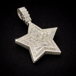 This fully iced star pendant is crafted from solid 925 sterling silver and set with premium VVS moissanite stones for maximum brilliance and fire. The layered star design features a...