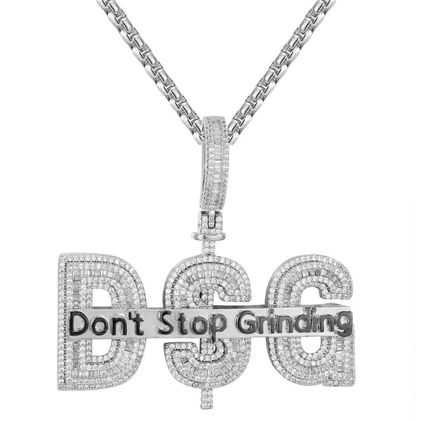 14k Gold Finish & White Gold Tone DSG Don’t Stop Grinding Hip Hop Pendant Charm w/ Rope Chain