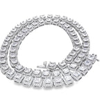 Introducing our exquisite 925 Moissanite diamond.This new Tennis Necklace is a stylish unisex piece made of 925 sterling silver.with 77.57 gm With timeless beauty and exceptional quality, The glistening Moissanite stones of CTW D & Clarity & Color emit a radiant sparkle. Nickel-free and rhodium-plated for durability, they are perfect for all genders and ages. Versatile for any occasion, they arrive brand new in original packaging, promising an enchanting experience.