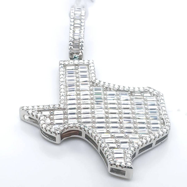 Elevate your elegance with our Iced Out Customs Exquisite Silver Diamond Texas Pendant, a captivating masterpiece that harmonizes the allure of sterling silver and the brilliance of diamonds. Crafted meticulously, this pendant boasts 4.43gm of lustrous adorned with ct of captivating diamonds that dance gracefully in the light. Texas design, a timeless emblem of love, is brought to life with a touch of warmth from the J-K colored diamonds. The pendant's 925 silver purity ensures both opulence and durability, while the I3 diamond grade adds a unique charm with its visible inclusions. Designed for comfort, this nickel-free pendant comes with the assurance of a secure bail of size and the elegance of rhodium plating.