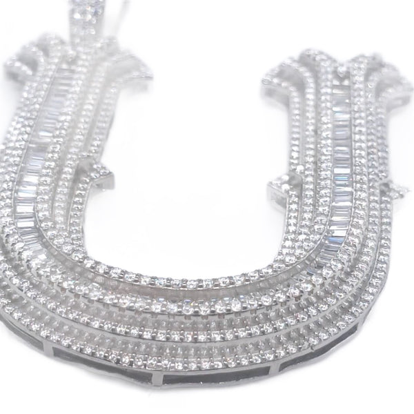 This new Iced Out Customs stylish unisex piece made of 925 sterling silver with a White metal color. It features a 4.46 ctw AAA cubic zircon giving it a good shiny appearance similar to a real diamond. The Initial Letter "U" pendant weighs 22.14 gm and is designed for both women and men, making it suitable for all genders. The Initial Letter "U" pendant comes in new condition with tags and original packaging, and the metal is rhodium plated and nickel-free for an enhanced appearance and reduced tarnishing. Detailed pictures are available for more information. If you have any further questions, please feel free to ask.