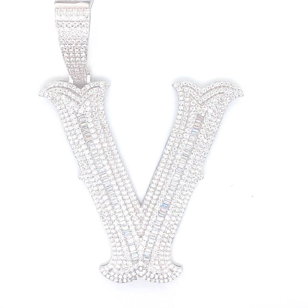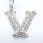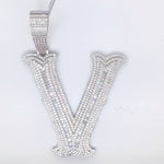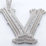 This new Iced Out Customs stylish unisex piece made of 925 sterling silver with a White metal color. It features a 4.46 ctw AAA cubic zircon giving it a good shiny appearance similar to a real diamond. The Initial Letter "V" pendant weighs 22.14 gm and is designed for both women and men, making it suitable for all genders. The Initial Letter "V" pendant comes in new condition with tags and original packaging, and the metal is rhodium plated and nickel-free for an enhanced appearance and reduced tarnishing. Detailed pictures are available for more information. If you have any further questions, please feel free to ask.